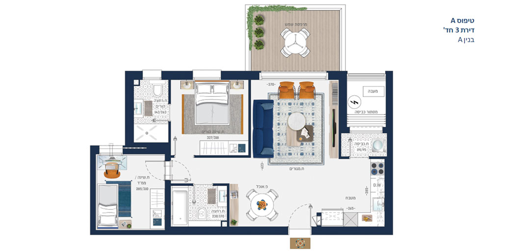 תמהיל הפרוייקט: 3 בניינים, 180 יח"ד