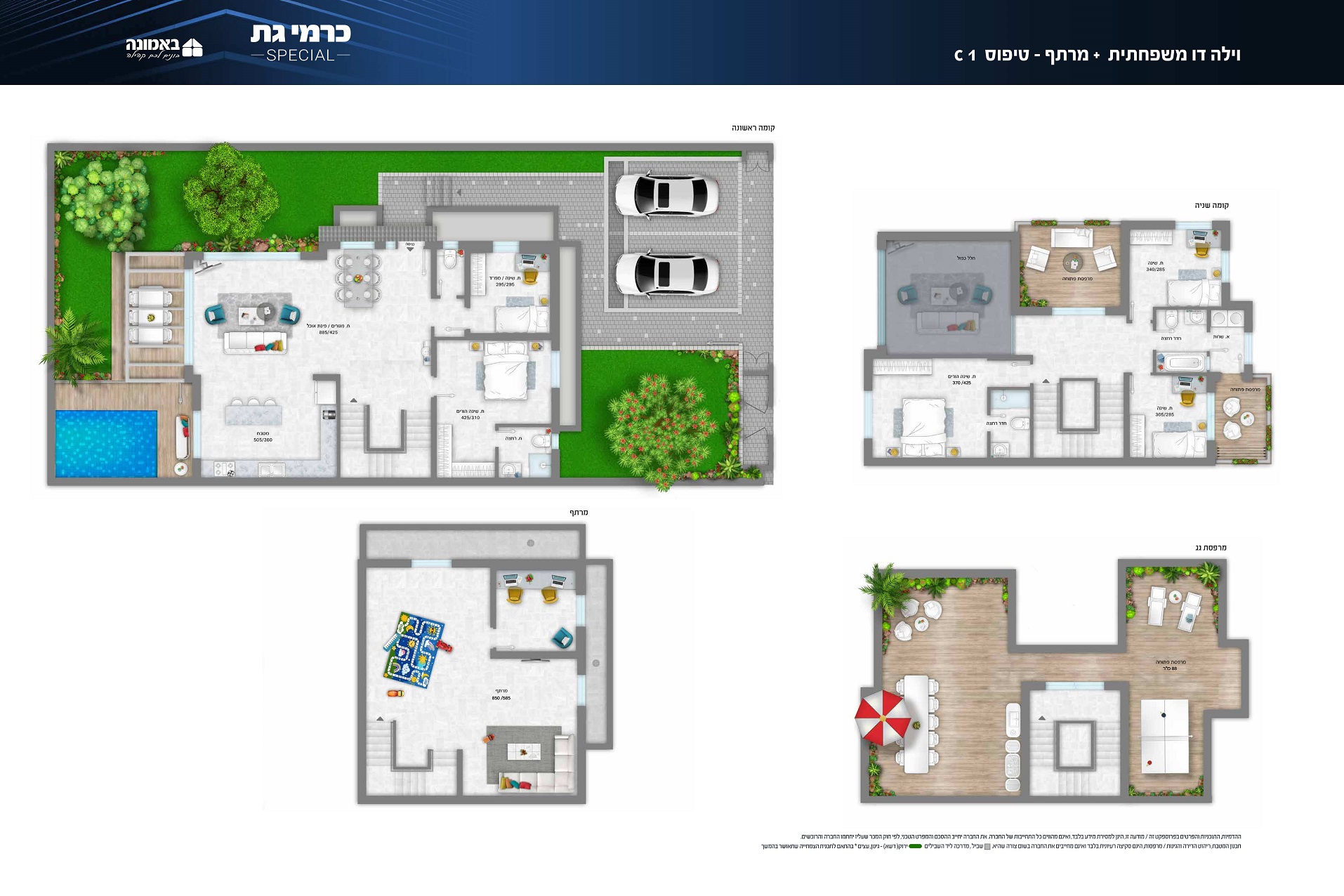 פרוייקט יוקרה, הכולל וילות דו משפחתיות עם גינה ענקית, עם אופציה למרתף ואפשרות לבריכת שחיה.