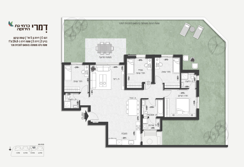 השכונה נהנית מרמת חינוך מהגבוהות בארץ, מעושר של פארקים ירוקים, מתחמי ספורט, אמפי תיאטרון, קאנטרי קלאב ומתחמי בילוי וקניות. נגישות מהירה ונוחה לרכבת, לכביש 6 ולכביש 4 ולמרכזי תעסוקה גדולי. בקיצור, כל מה שמשפחה צריכה ורוצה. פרויקט דמרי כרמי גת הירוקה נמצא במיקום אסטרטגי בלב הרובע החדש של כרמי גת וצופה כולו למרחבים ירוקים. הפרויקט כולל 4 בנינים בני 8 קומות ומגוון דירות מרווחות, מדירות 3 חדרים ועד לדירות 4 חדרים. הפרויקט כולל חניון תת קרקעי ומחסן קומתי לחלק מהדירות. אלפי משפחות כבר מתגוררות בבתים שבנינו ונהנות מאיכות מגורים גבוהה, אתם מוזמנים להצטרף.