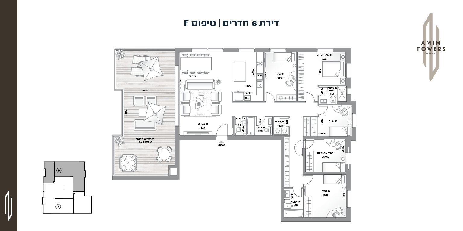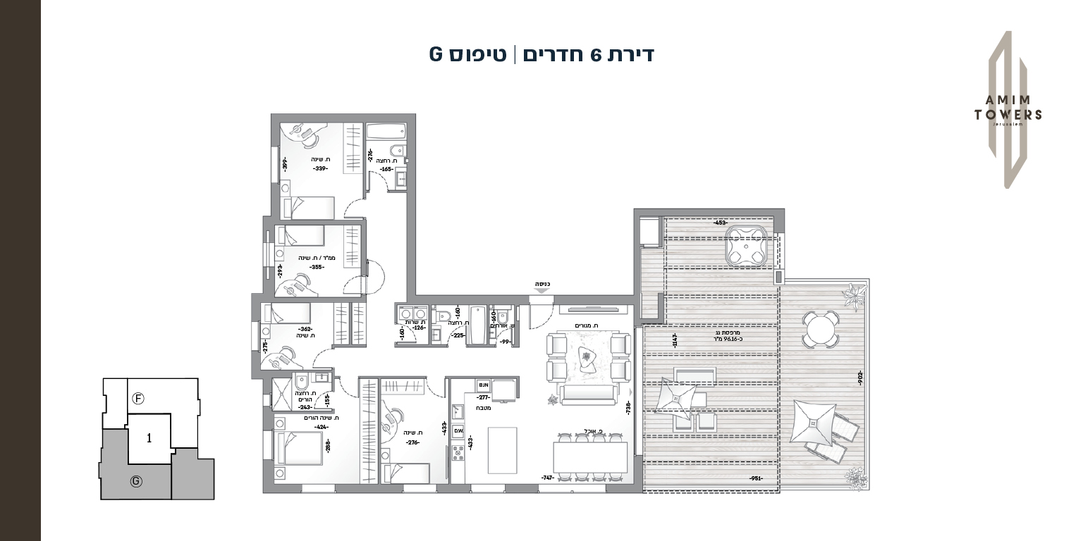 תוכננה בקפידה כדי ליצור מרחב חיים משותף ומחבר. בפרויקט תמצאו חדר כושר מתקדם ומאובזר, לאונג' דיירים מרווח, בית כנסת מפואר ומתחם מיועד לבניית סוכות. הפרויקט צופה לנוף ירושלמי קסום וממוקם על דרך חברון, על ציר הרכבת הקלה, בצמוד לשכונת ארנונה ודקות נסיעה ספורות בלבד משוק מחנה יהודה.