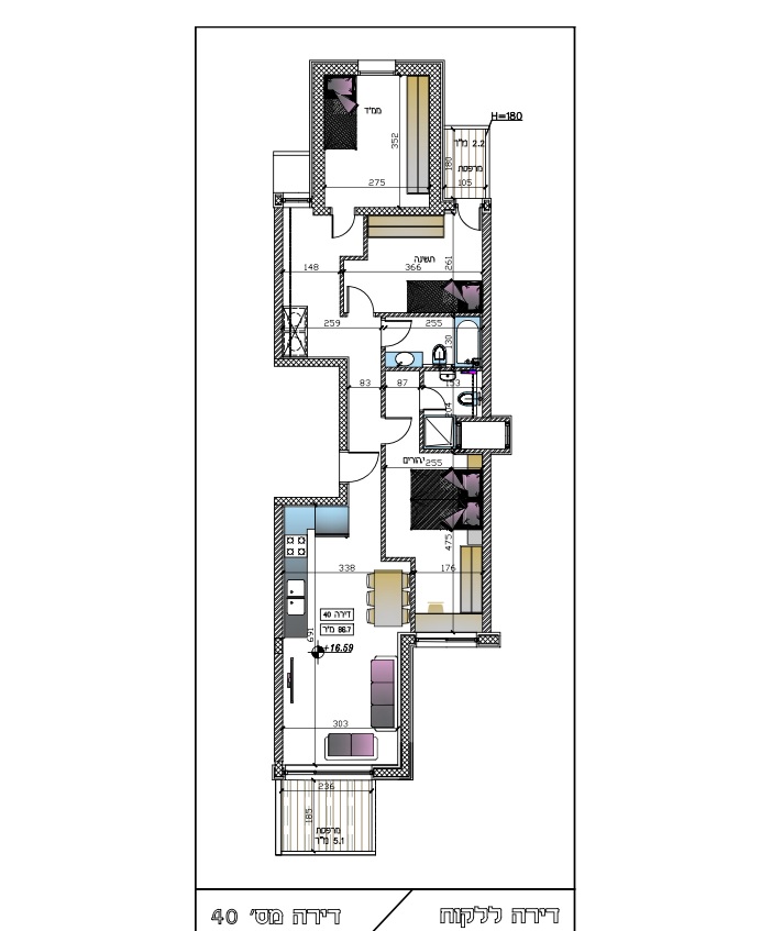 תמהיל הפרוייקט: 3 בניינים, 44 יח"ד