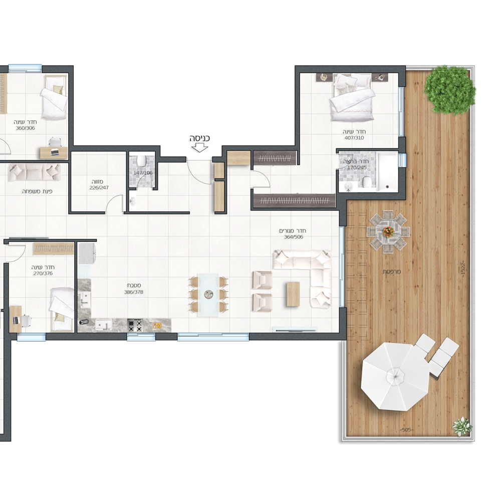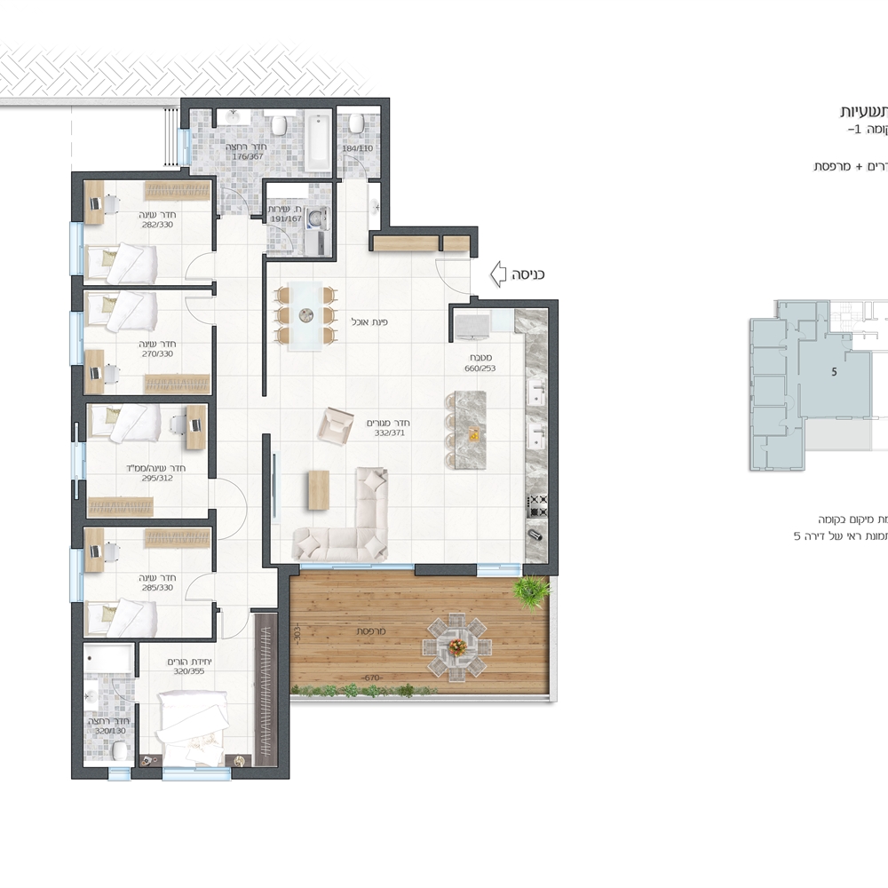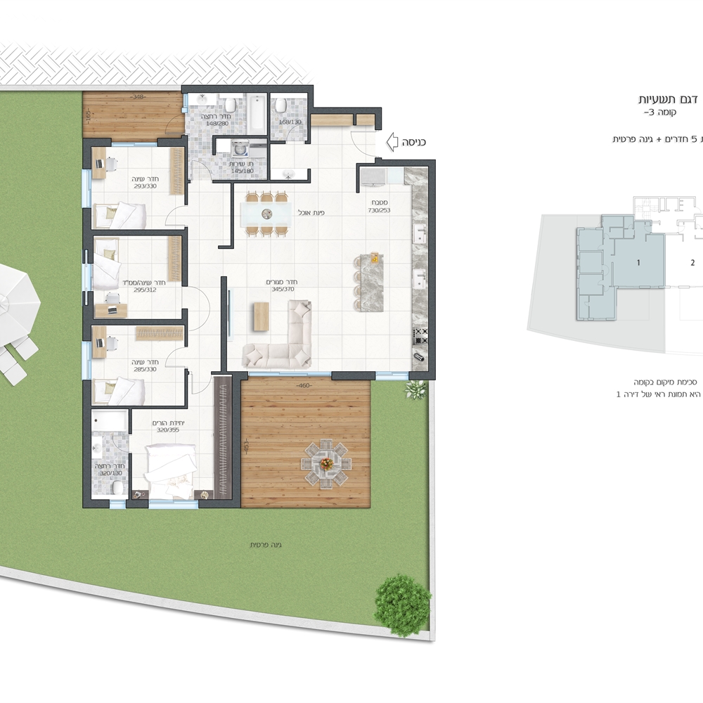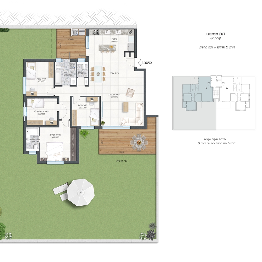 נוף מרהיב וירוק, עם מרפסת שמש סוכה 25 מ"ר! החל הפריסייל! 5 חדרים החל מ-