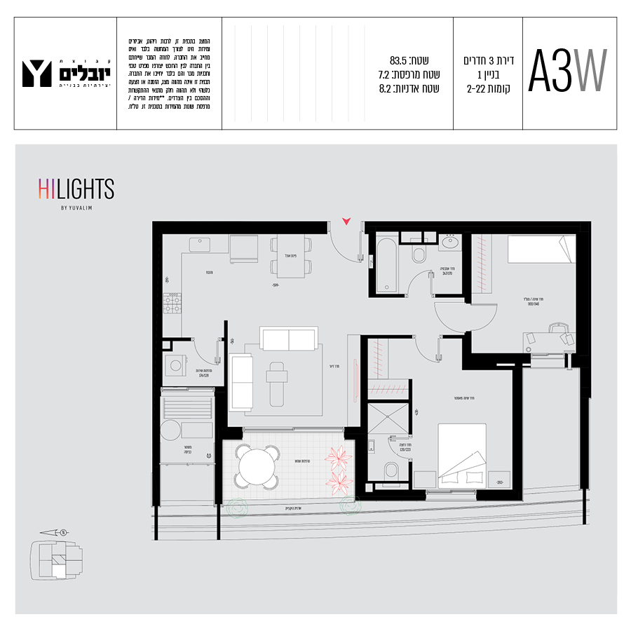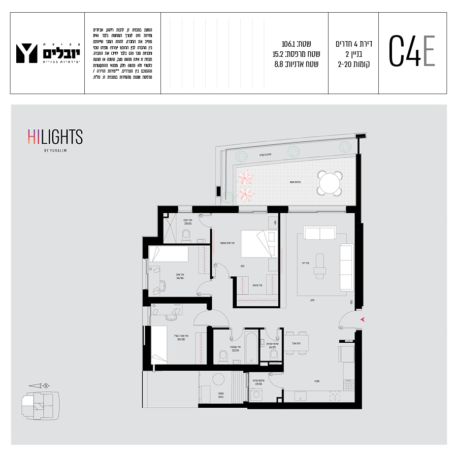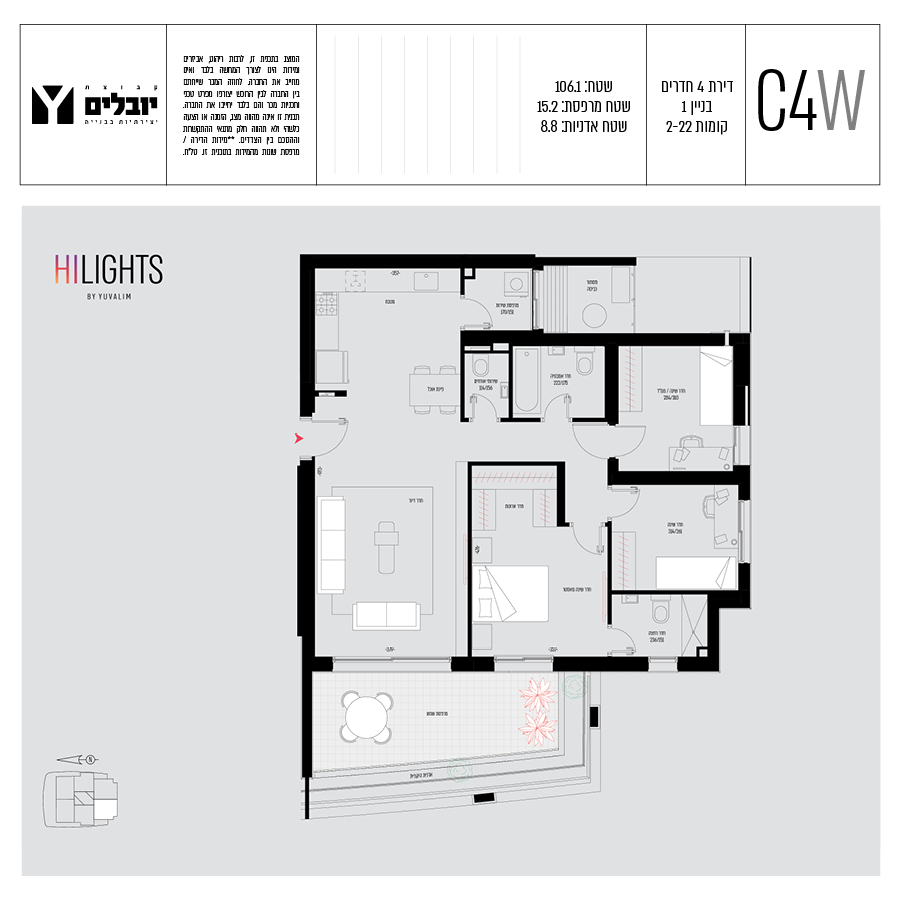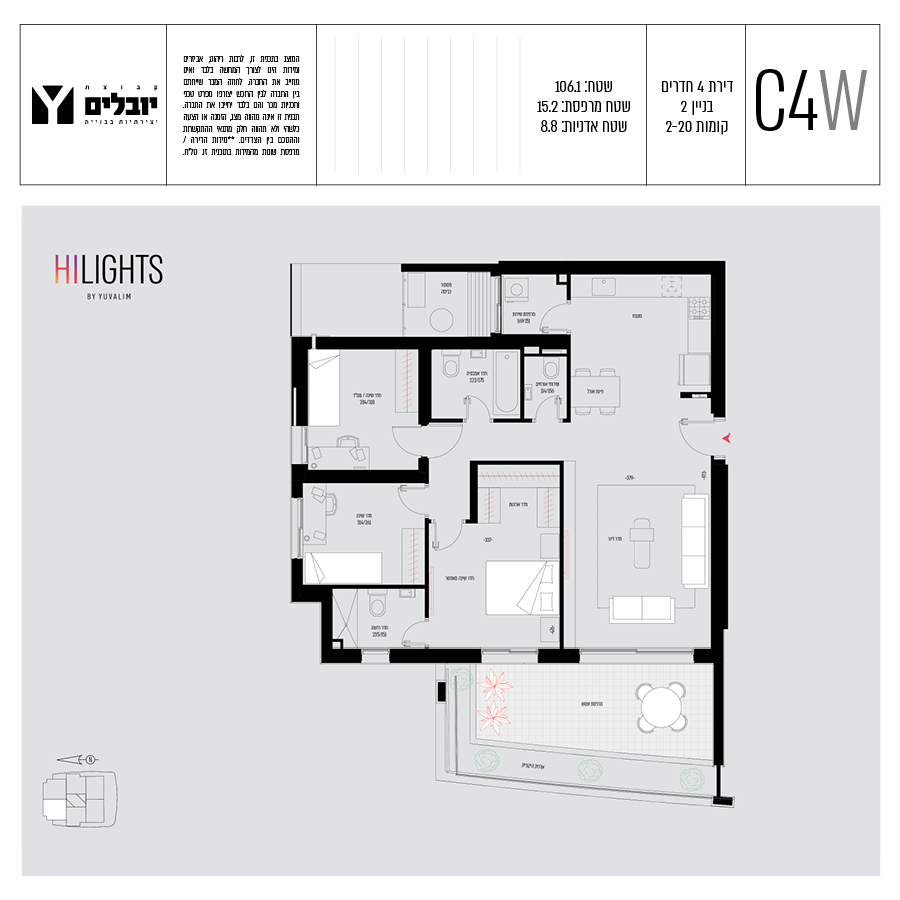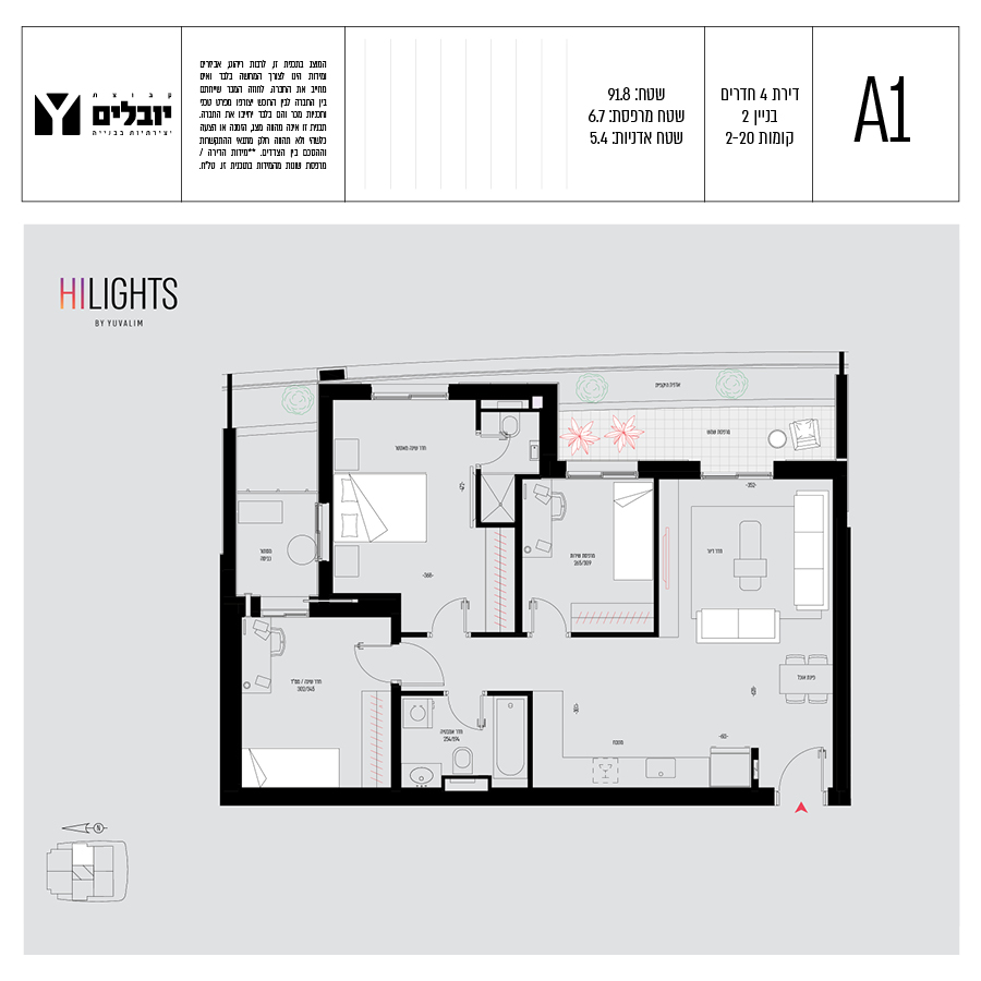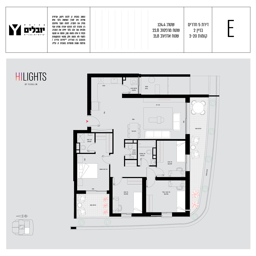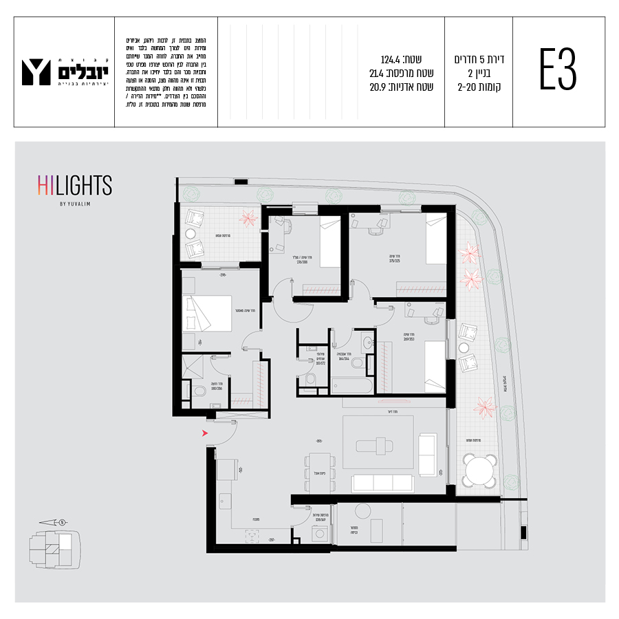 בכל הדירות תמצאו מרפסות ענקיות בעלות גינות תלויות, דירות 3,4,5, חדרים ופנטהאוזים מרווחים.