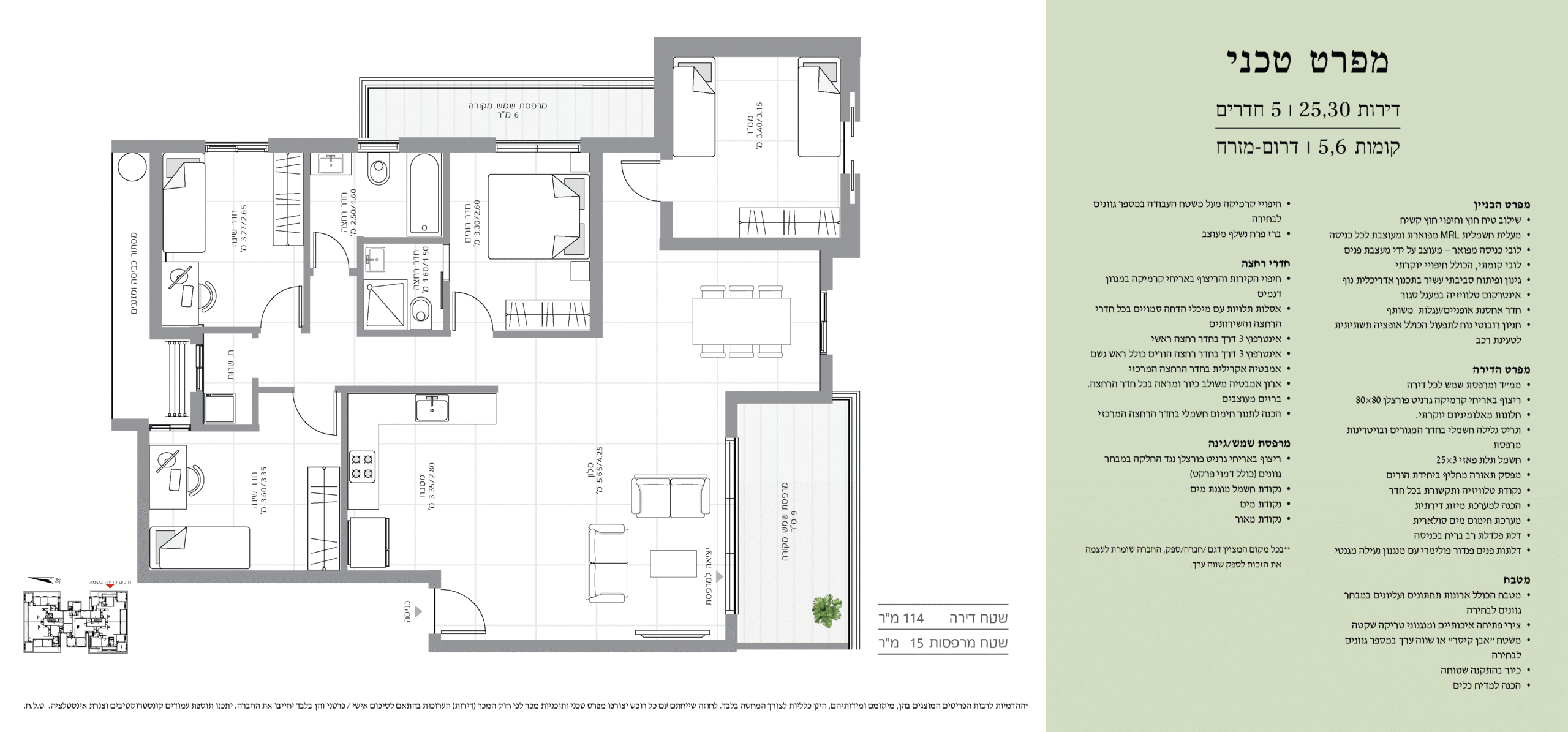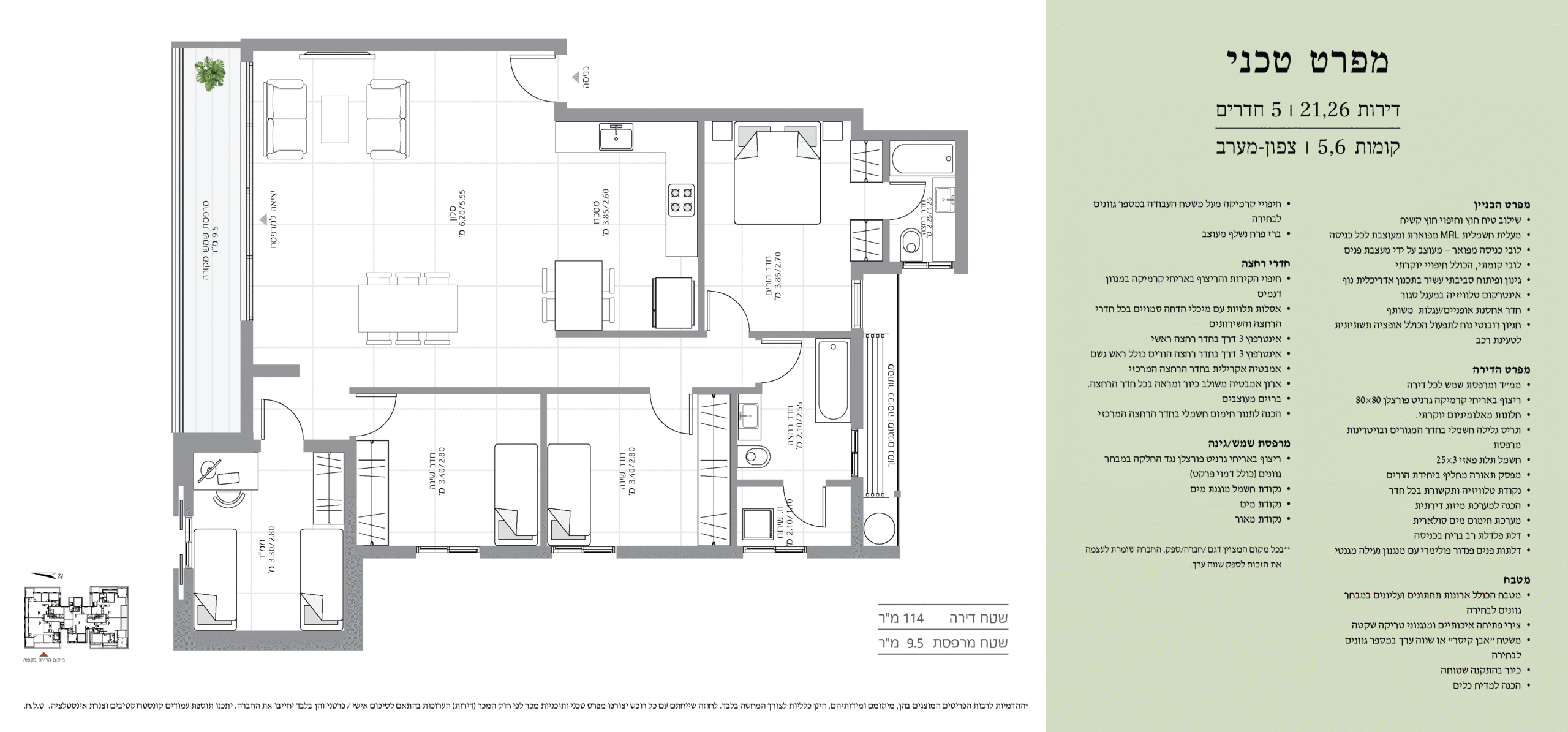 מקומה חמש ומעלה, 108-114 מ"ר בנוי עם מרפסות [אפשרות לסוכה] עד 16 מ"ר, מיזוג אוויר וחניה! ללא מדד! 5 חדרים החל מ-