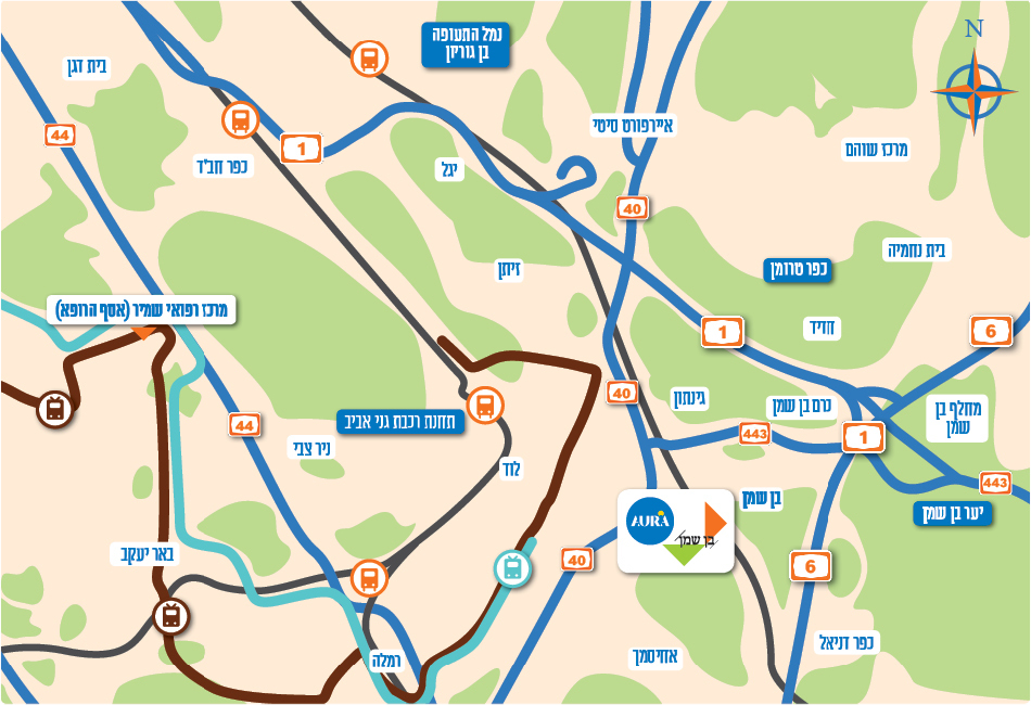אאורה בן שמן ממוקם בלב הארץ עם נגישות מצוינת לעורקי התחבורה המרכזיים – כביש 40 ממערב, כביש מספר 1 ממזרח, וכביש 443 מצפון. התושבים ייהנו מגישה ישירה למחלף בן שמן ומשם לנתב"ג, למטרופולין תל אביב ולכביש 6. הפיתוח הסביבתי הנרחב יכלול שבילי הליכה ואופניים, אמפיתאטרון לצד פארק ואגם אקולוגי, פינות ישיבה, מתקני משחק וספורט, גינות מטופחות לרבות גינת כלבים, אזורי פנאי ובילוי.