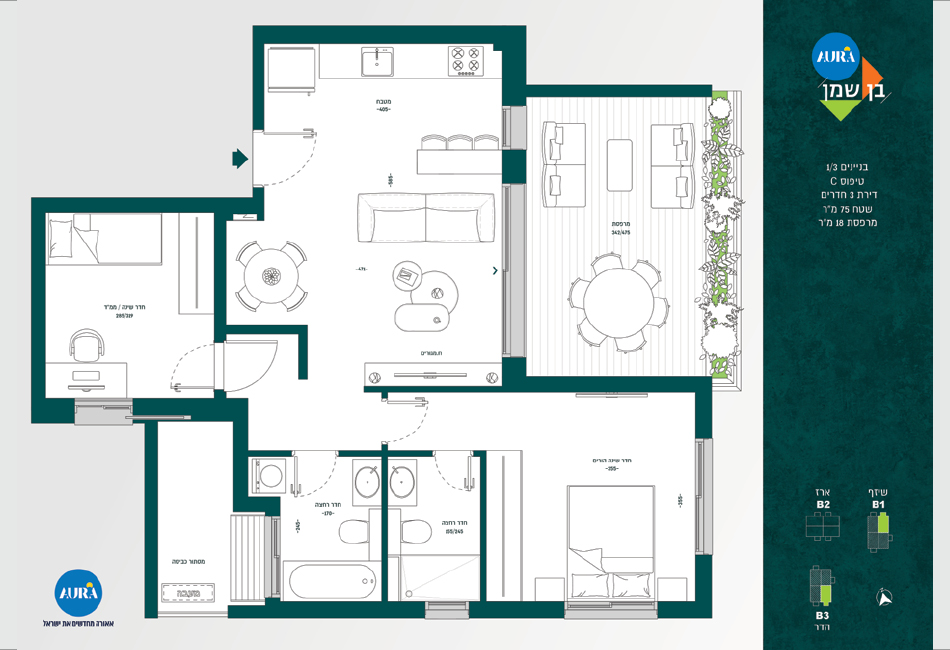 חברת אאורה, מגוון דירות 4,5,6 חדרים, דירות גן, מיני פנטהאוזים ופנטהאוזים.