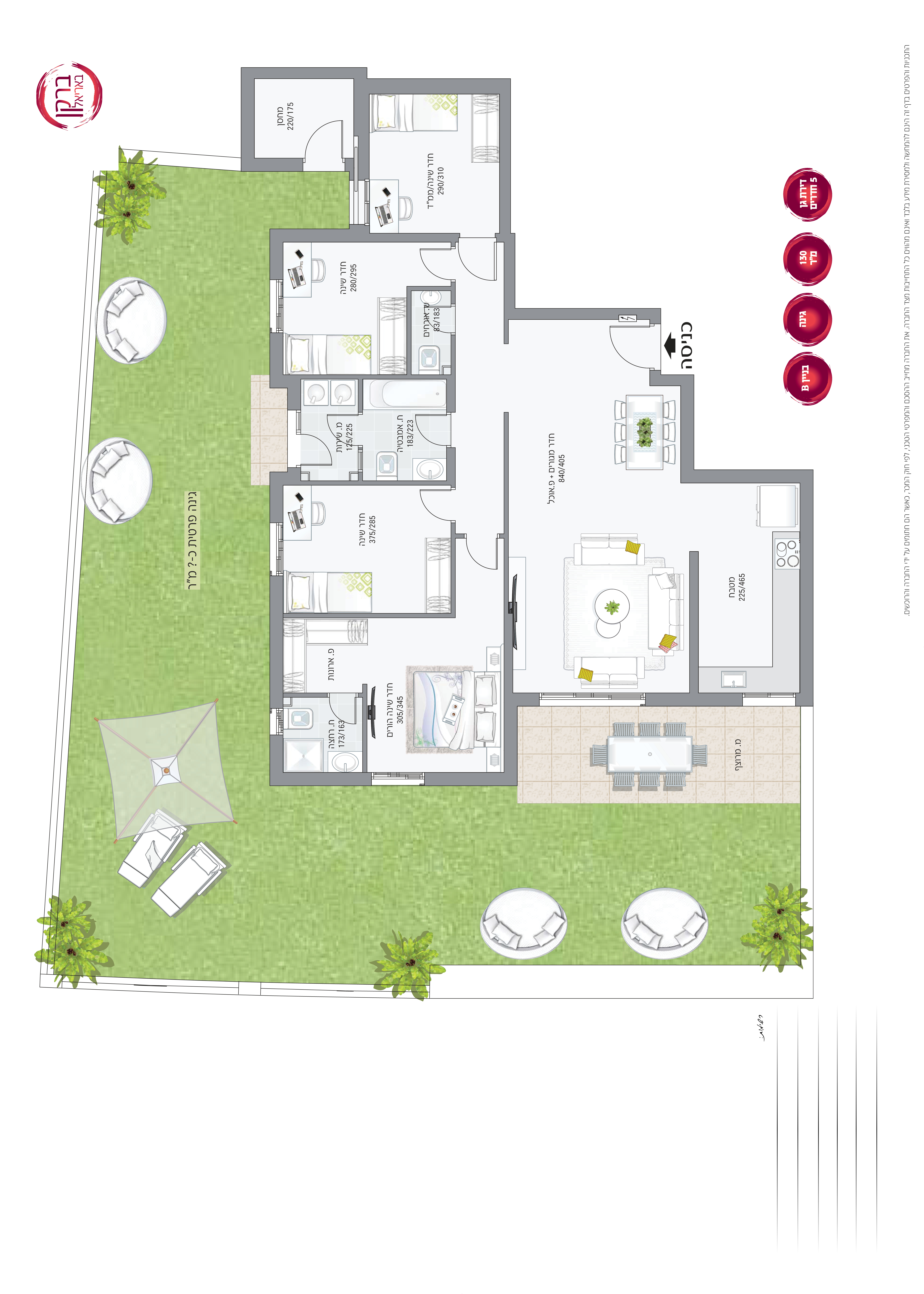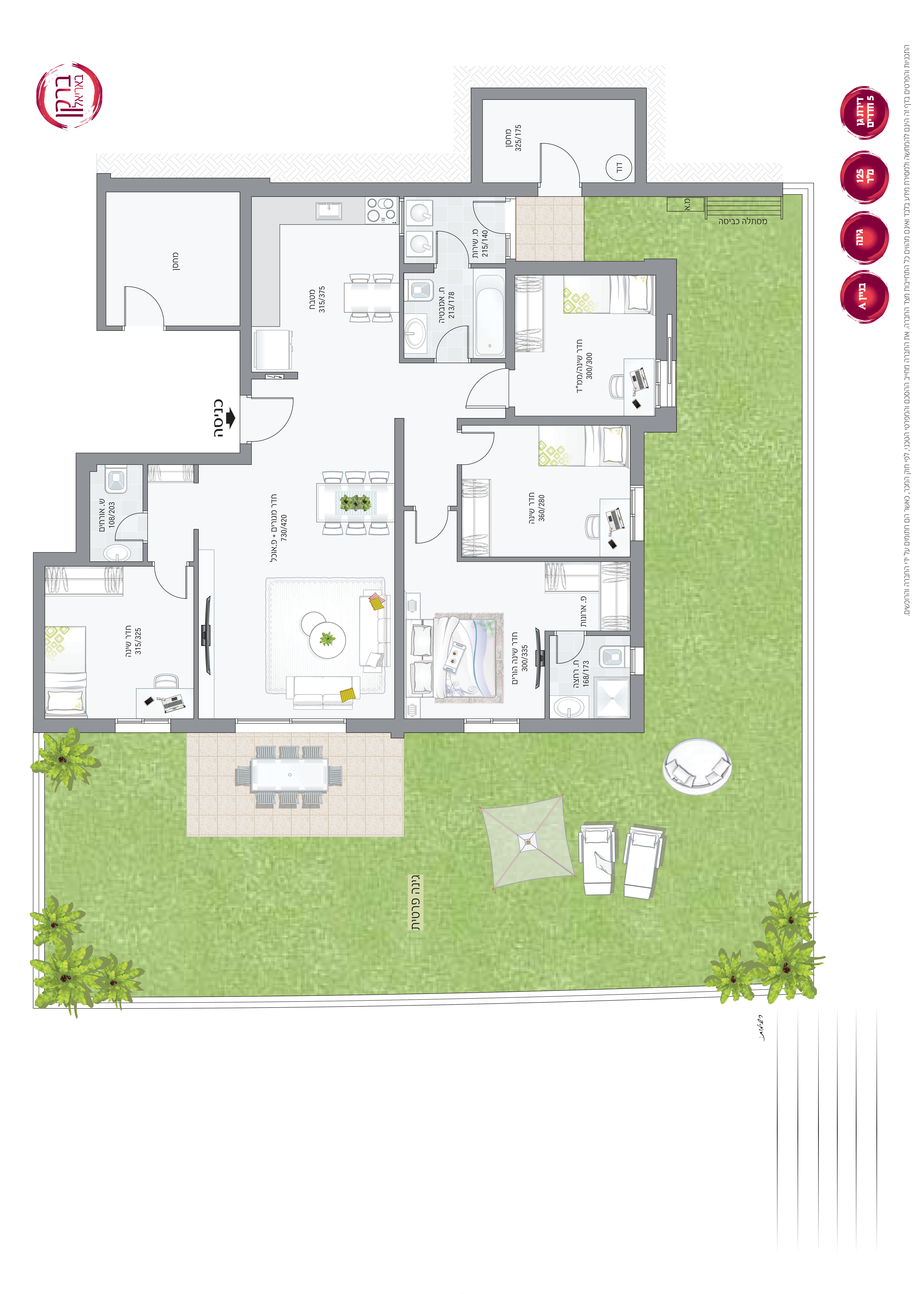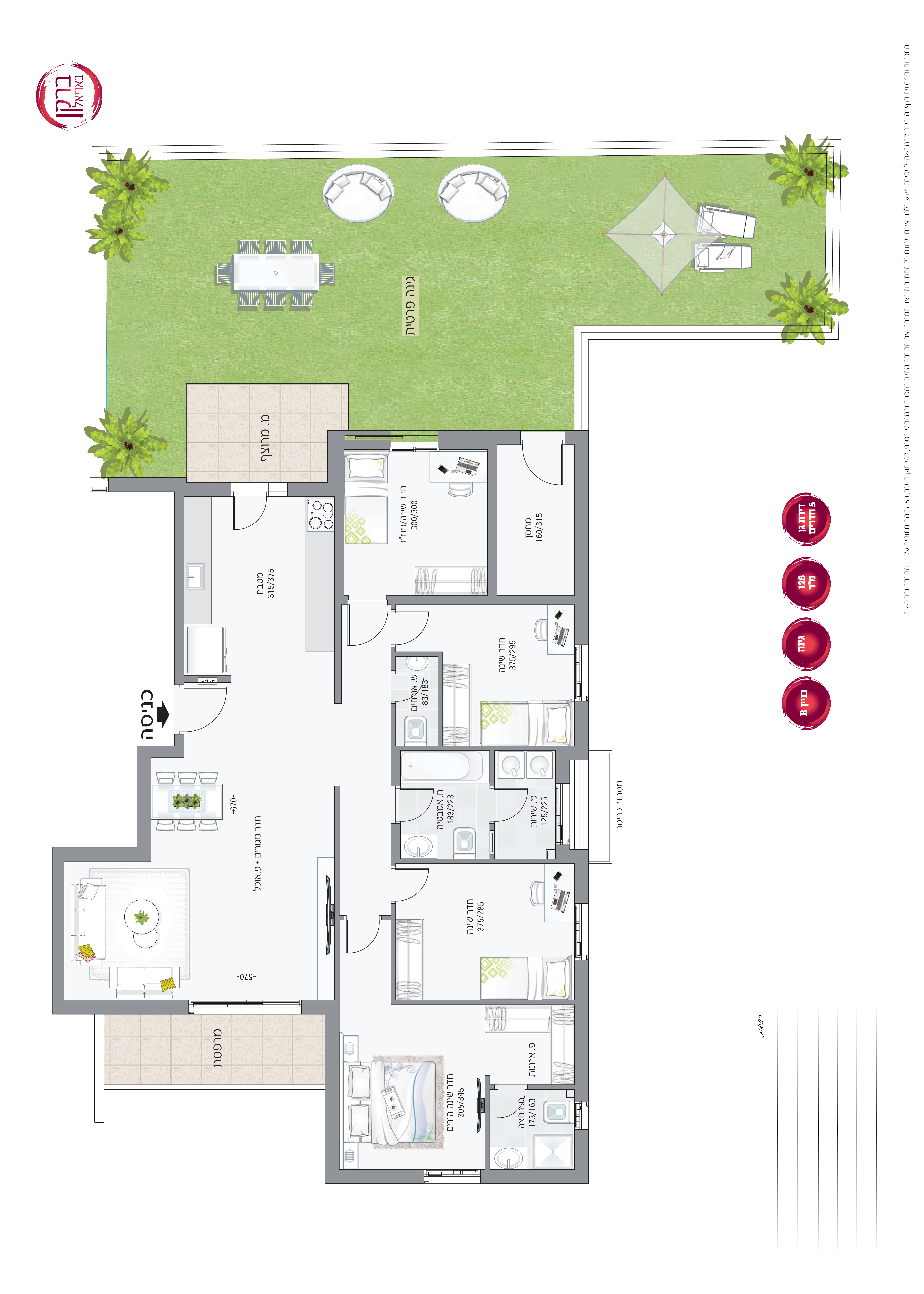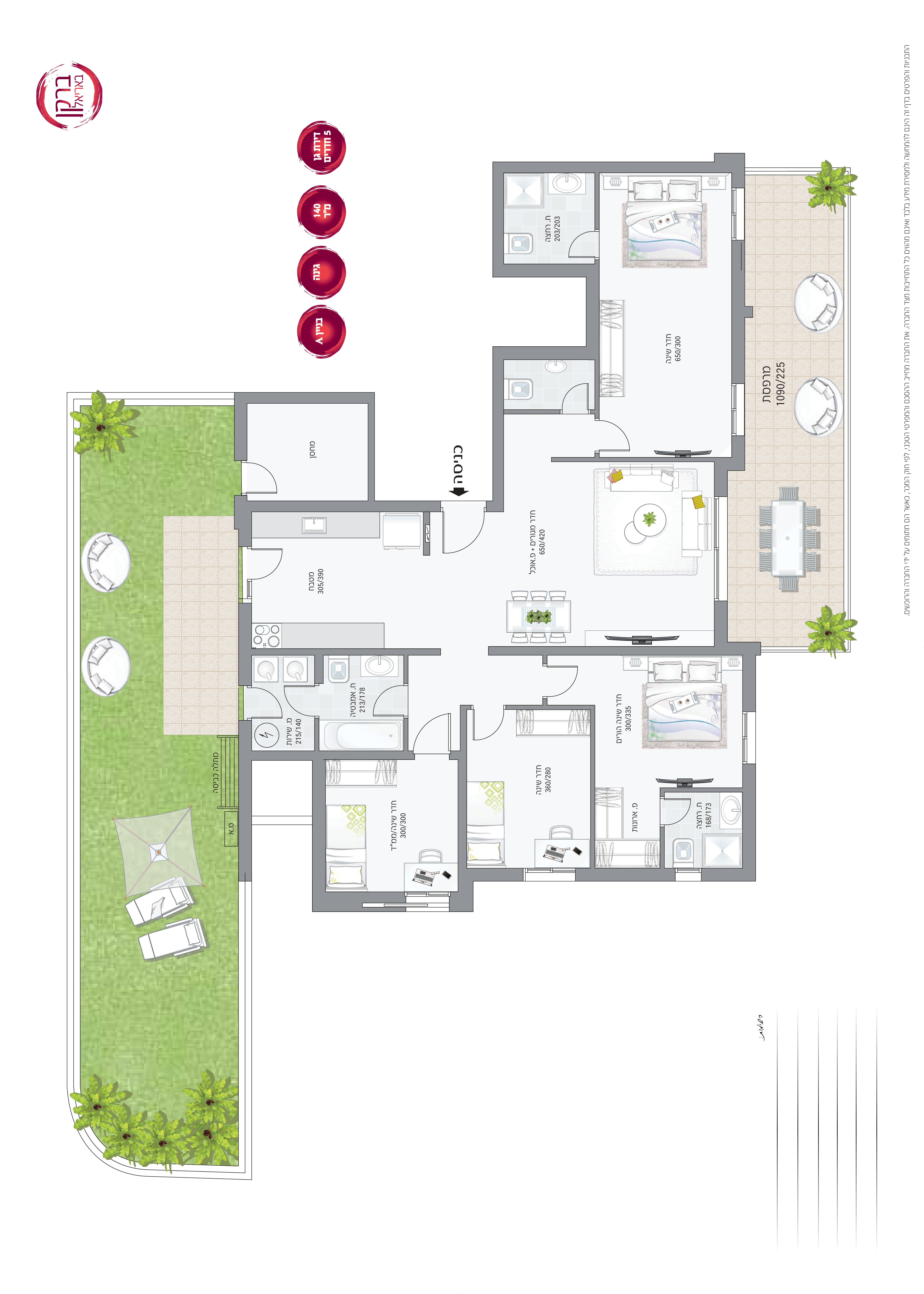 דירת גן חמישה חדרים עם גינה ענקית, 140 -315 מ"ר, מחסן ושתי חניות! 5 חדרים החל מ-