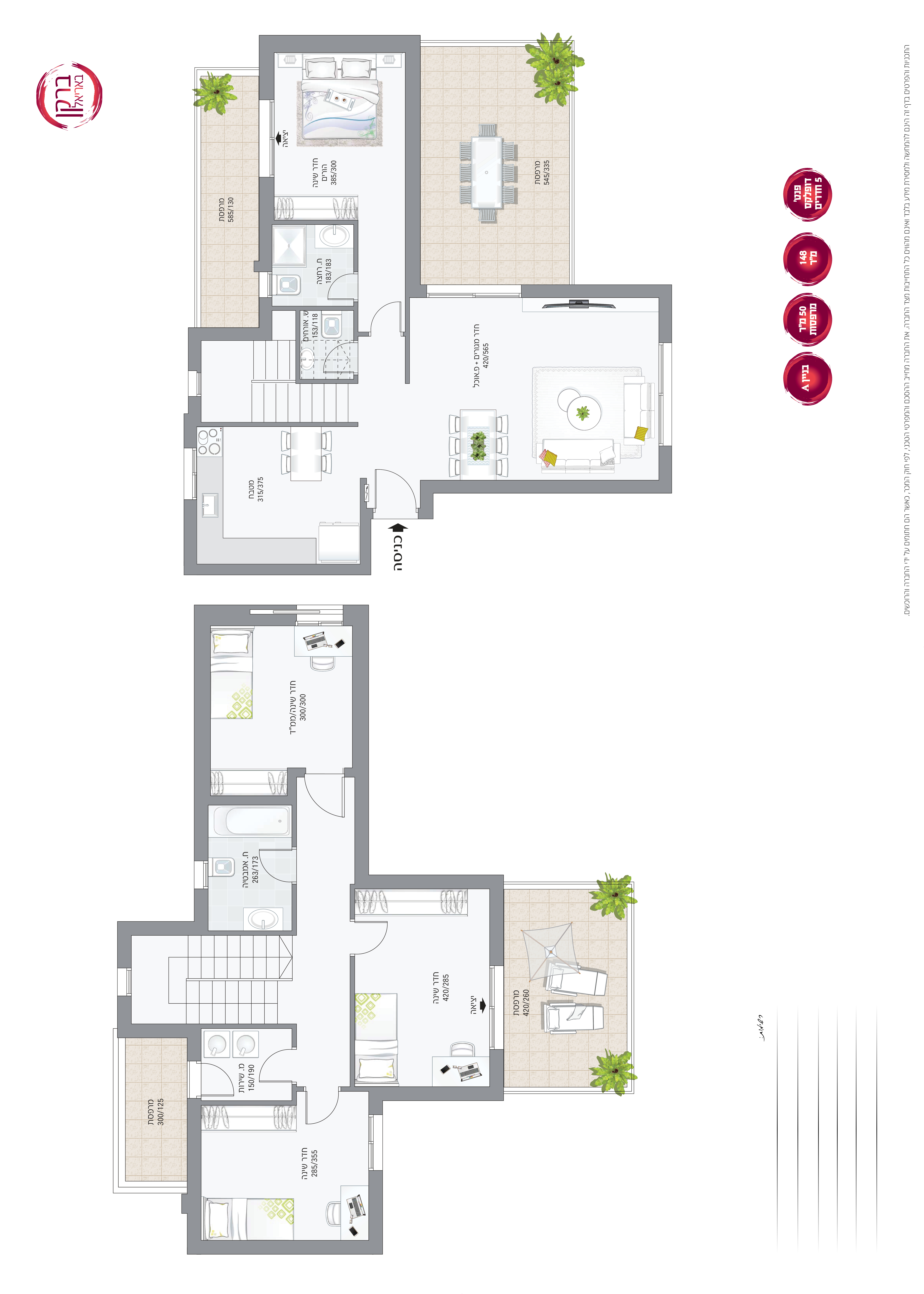 5 חדדירות גן 5 חד'פנטהאוז 5 חדריםדופלקס גג 5 חדרים עם מרפסות